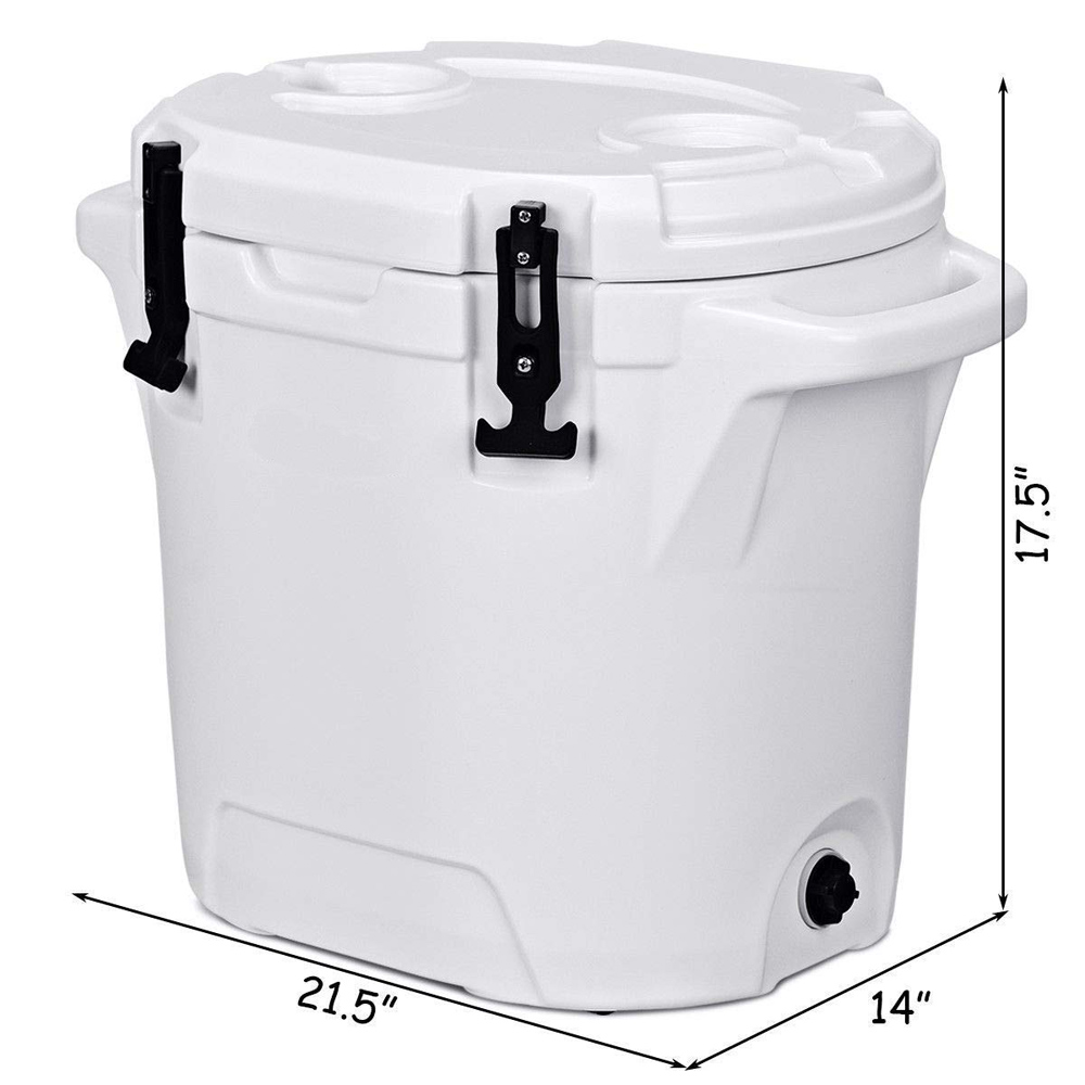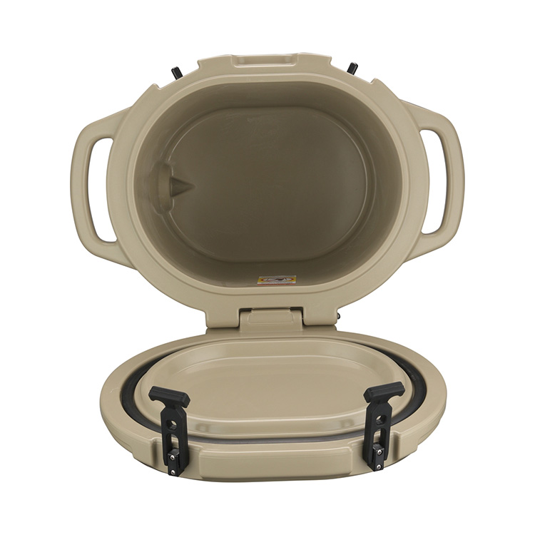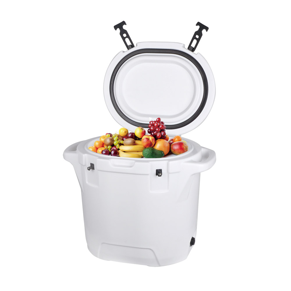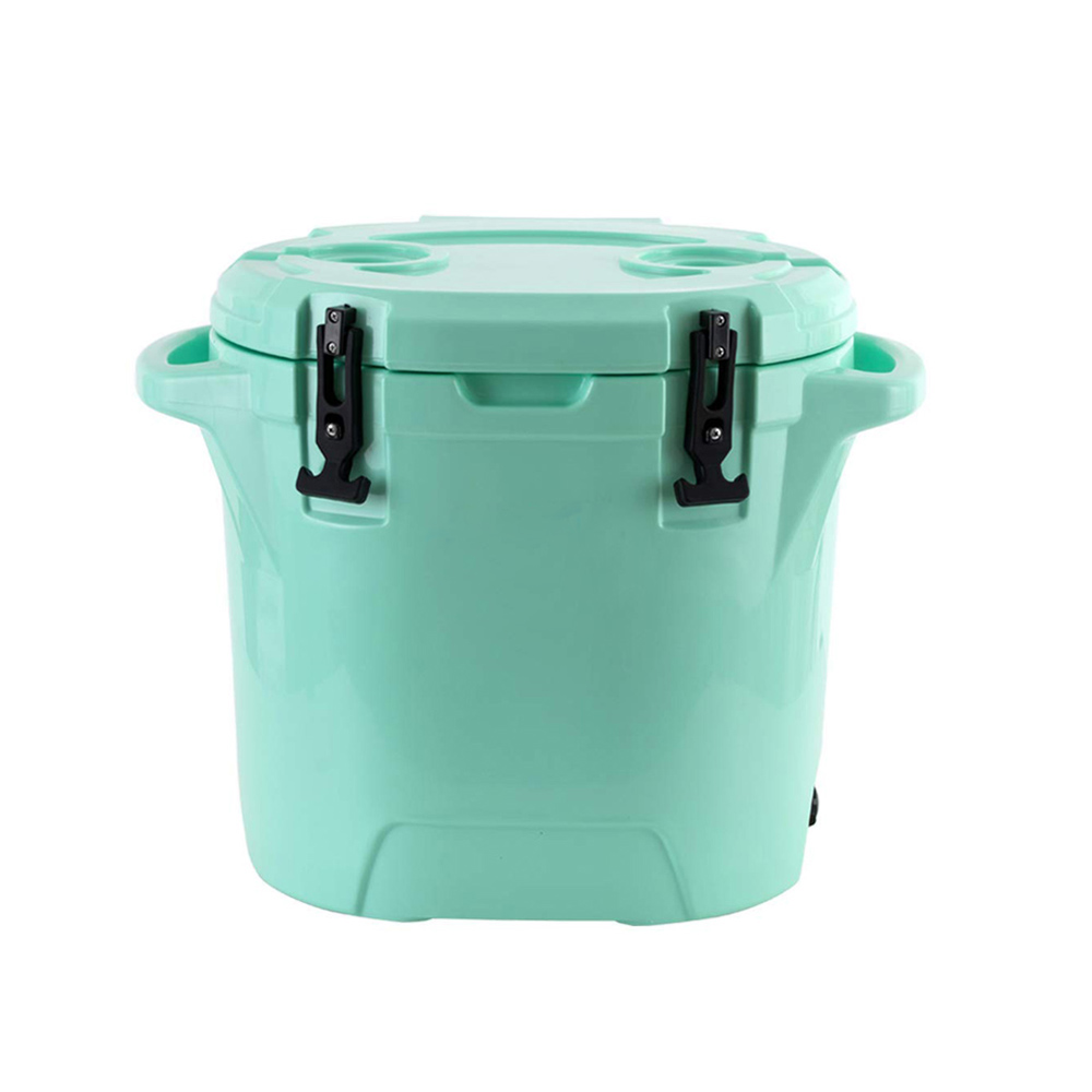 Are you concerned about your food spoiling during outdoor activities? Look no further! This brand new, high-quality ice cooler is your ideal choice. Designed with reliable LLPD and PU foam, it maintains your desired temperature for an extended period. Featuring thoughtful design details like molded tie-down slots, an integrated locking system, convenient handles, and an anti-skid bottom, this cooler is your perfect companion for parties, picnics, fishing trips, camping adventures, and even self-driving journeys. Don't hesitate to make this essential equipment yours. This Round Cooler is perfect for picnics, camping, fishing, family outings, boating, hunting, driving, and other outdoor activities. When the cooler is fully packed with ice, it can keep your items cool for 5 to 7 days at temperatures below 77℉, and approximately 3 days at around 100℉. Don't miss out on this durable and functional cooler that ensures your food stays fresh wherever your outdoor adventures take you.