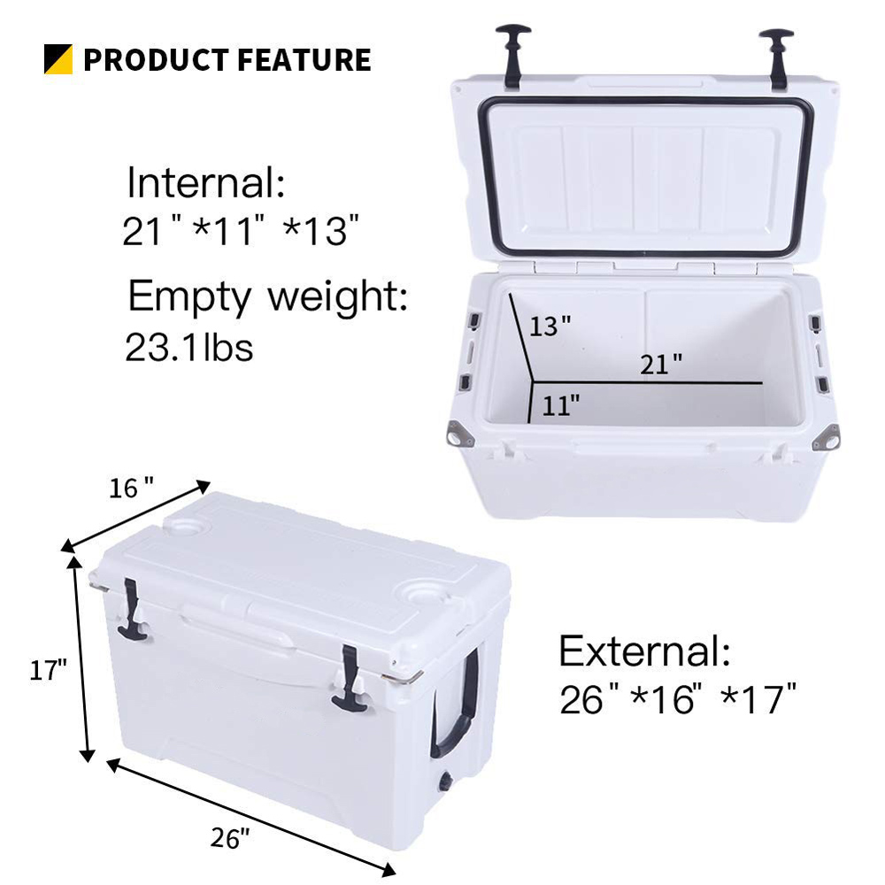 This Cooler is perfect for you to do picnicking, camping, fishing, family outing, boating, hunting, driving, and other outdoor activities. When the cooler in outside FULL with ice, will keep 5 to 7 days under 77℉. Above 100℉, ice will stay about 3days.