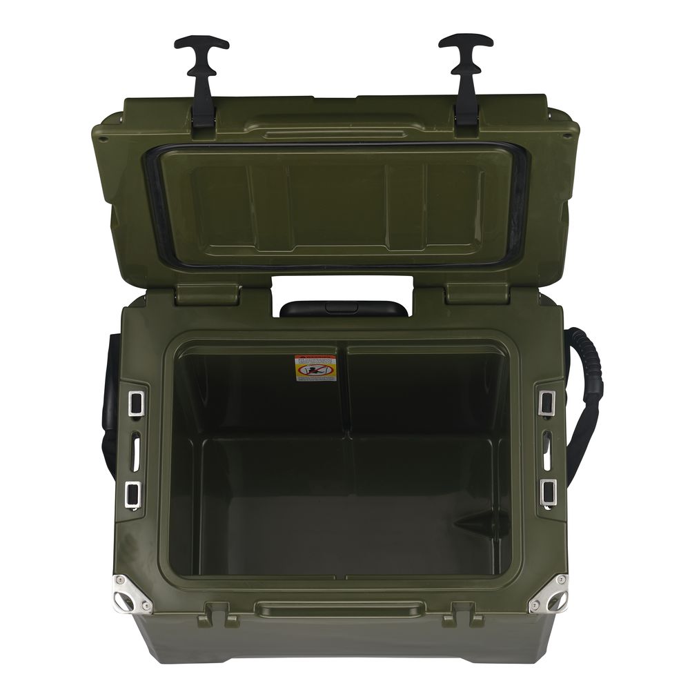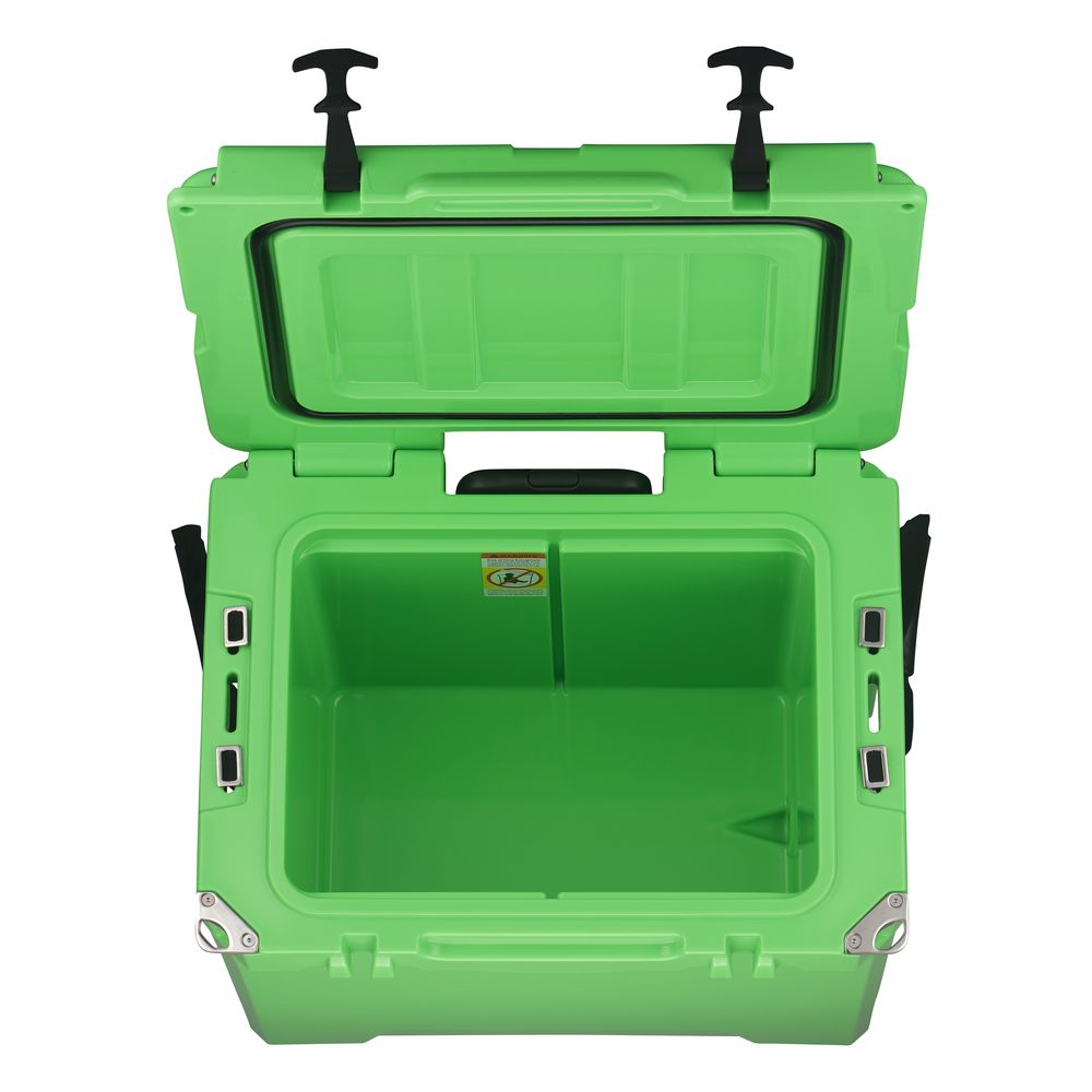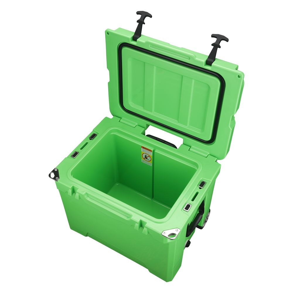 Environmentally Friendly & Utility Design - Additional features include 2-cup holders in top, secure-latches, non-skid feet at the bottom and molded loops on lid & liner by adding a lock (not included) More, depending on ice cubes and high-quality insulating materials, this cooler is energy conservation and environmentally friendly. This cooler will give you a green experience which doubles your joy of traveling.