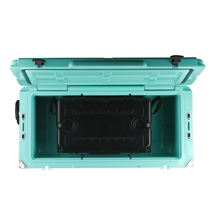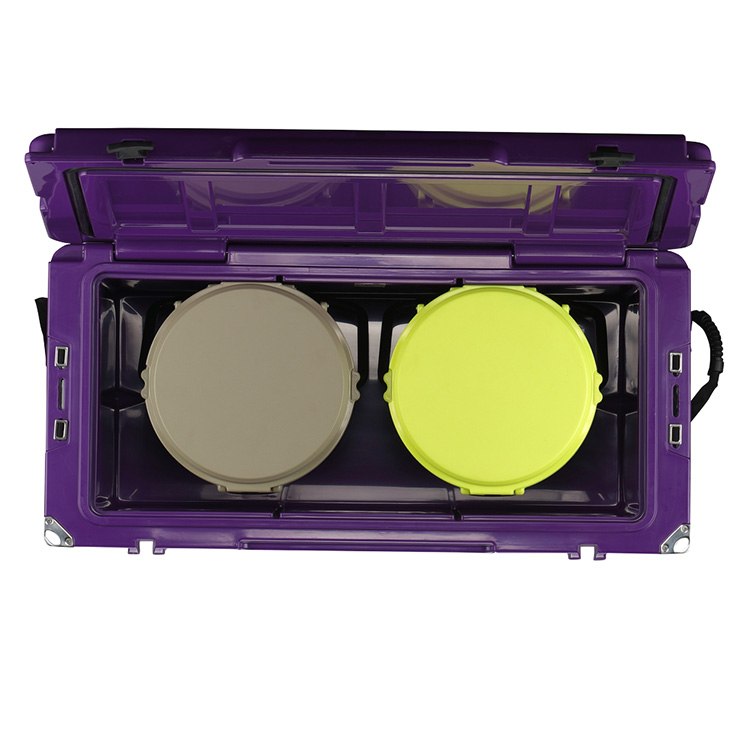 Indestructible Roto-molded thermoplastic construction with commercial grade insulation provides a longer ice retention time. All material touching food is Food safe.