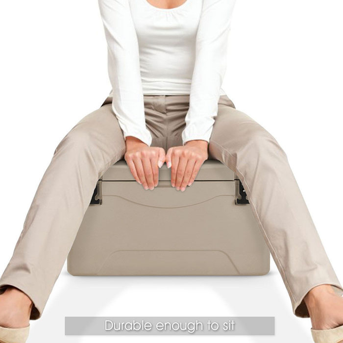 • DURABLE HARDWARE: With 2 rope handles for convenient moving, 2 locking latches, reinforced lockable so wherever you decide to take it, this portable cooler’s sturdy construction will stand up to the rigors of the journey