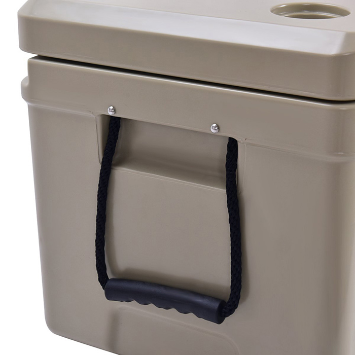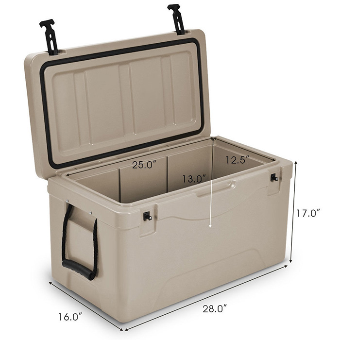 • PERFECT TRAVEL SIZE: Compact Cooler Holds Up to 132 Pounds of Ice,Overall Dimension: 28.0"X16.1"X17.1"(LXWXH, Inner Size: 24.41"X11.81"X12"(LXWXH) ,Drain plug diameter: 28mm,Package Include: 1 X 63 Quart Grey Cooler